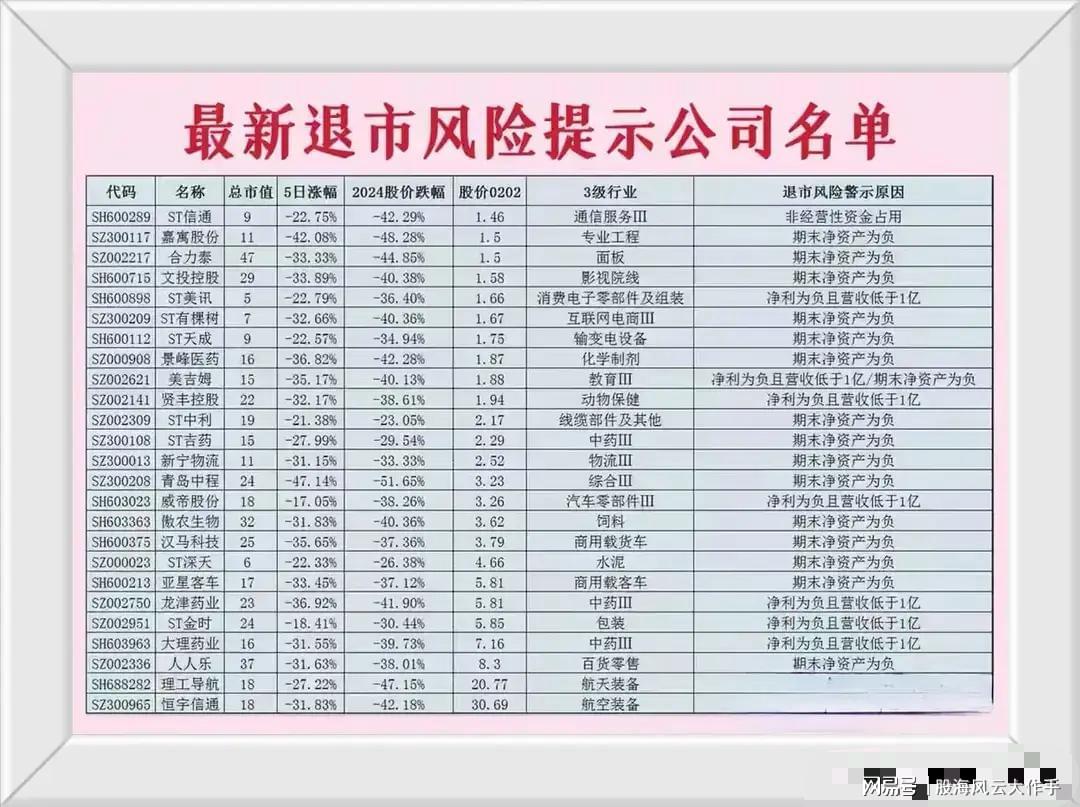 台州股票配资 天雷滚滚!最新ST避坑名单盘点,最新退市风险提示公司名单一览